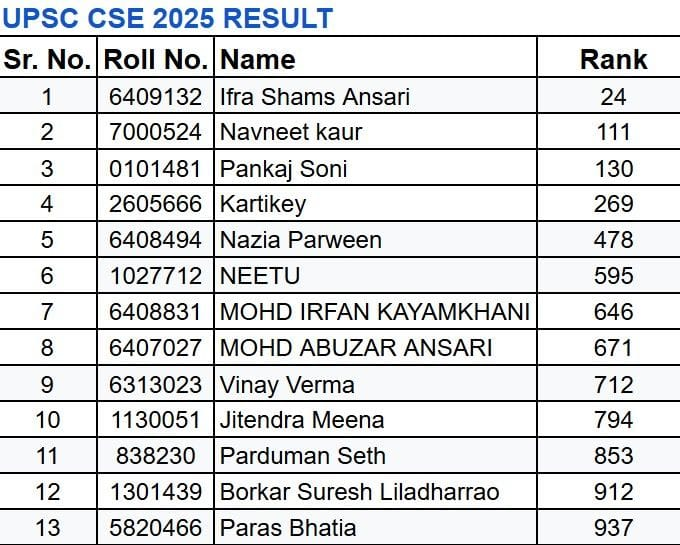 | 10. | Atif Waquar Ekram Ansari | 4123999 | 819 |